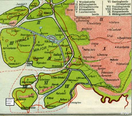 Die heutige Halbinsel Eiderstedt besteht aus "Dreilanden": Eiderstedt, Evershop und Utholm (mit Ulstrup=St.Peter)