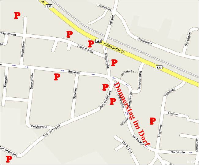 Von St. Peter-Böhl kommend: Richtung Norden, durch den Heideweg bis zur Dorfstrasse - zu den Parkplätzen rund um die Dorfstraße.