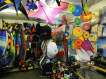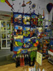 Drei Damen geben in SPO, dem ersten Fachgeschäft für Sport- und Lenkdrachen Profil. Liebevoll und übersichtlich sortiert warten in den gut gefüllten Regalen: - die schönsten motorfreien Flugobjekte mit Zubehör - zauberhaft dekorative, vielfältig geformte Windspirationen - Strandspiele, und andere Produkte, die den Aufenthalt am Meer zu einem Erlebnis werden lassen. Ihre Prämisse: Urlaub und Drachen. Wie ein Pilot den Hightechvogel lenken, steuern, führen, kreiseln, oder trudeln lassen und ihm wieder elegant eine bestimmte Richtung geben. Also erst mal zur Drachenkiste!